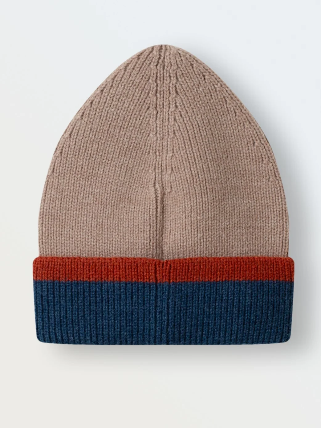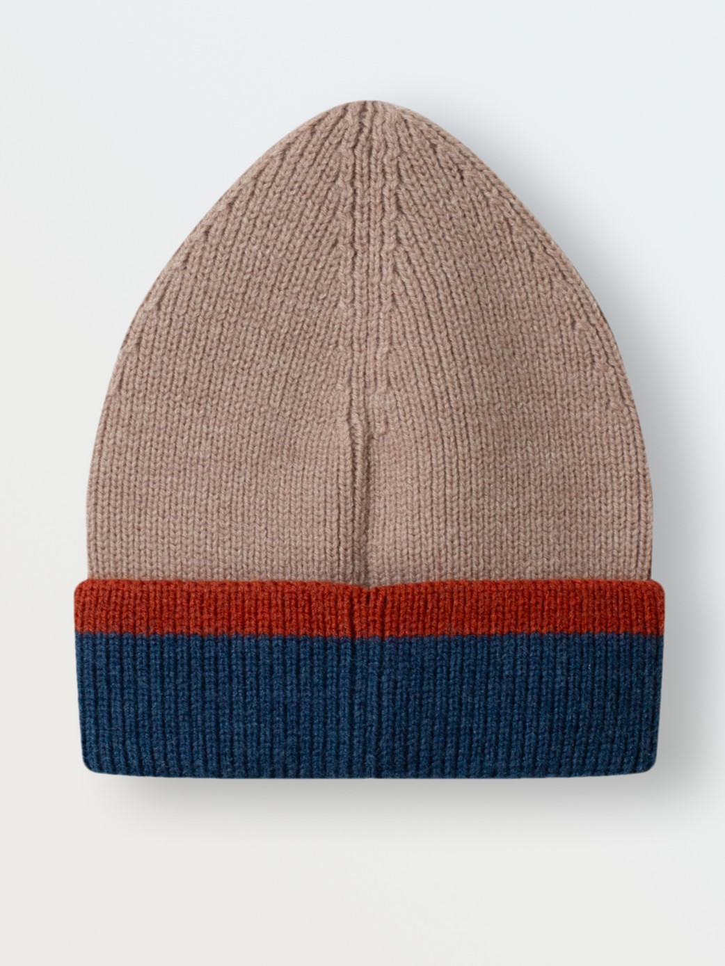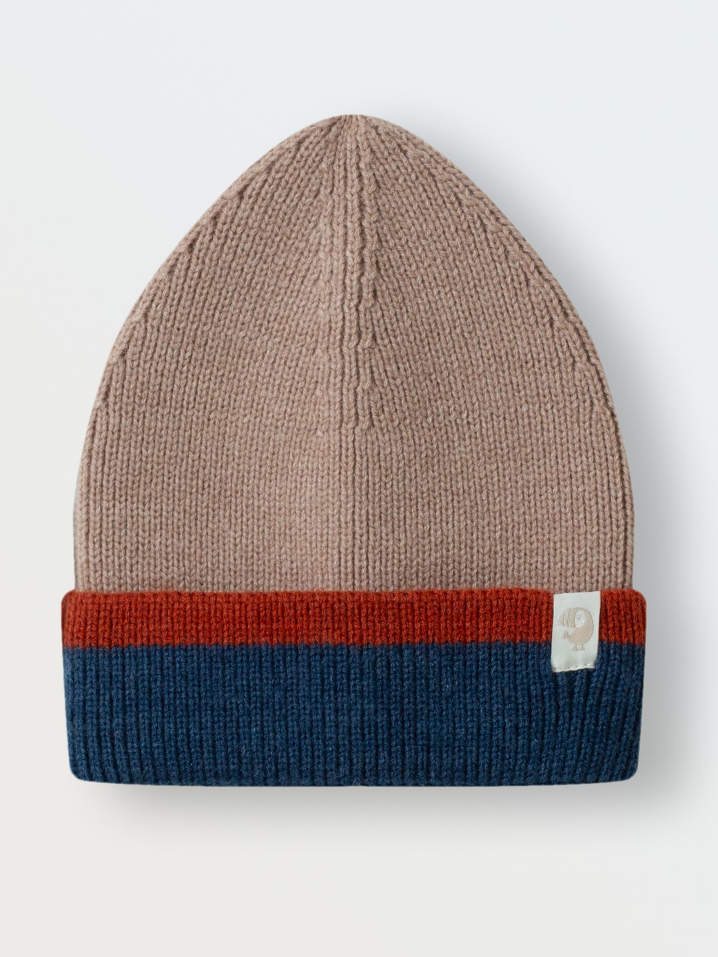 Шапка вязаная с отворотом, Тёплый беж + джинс