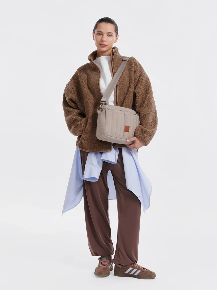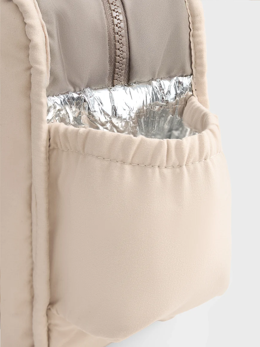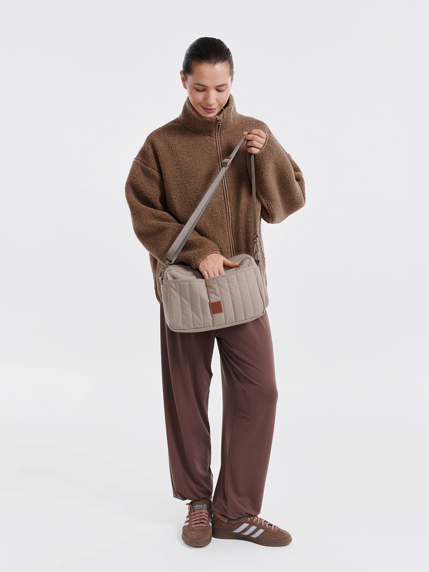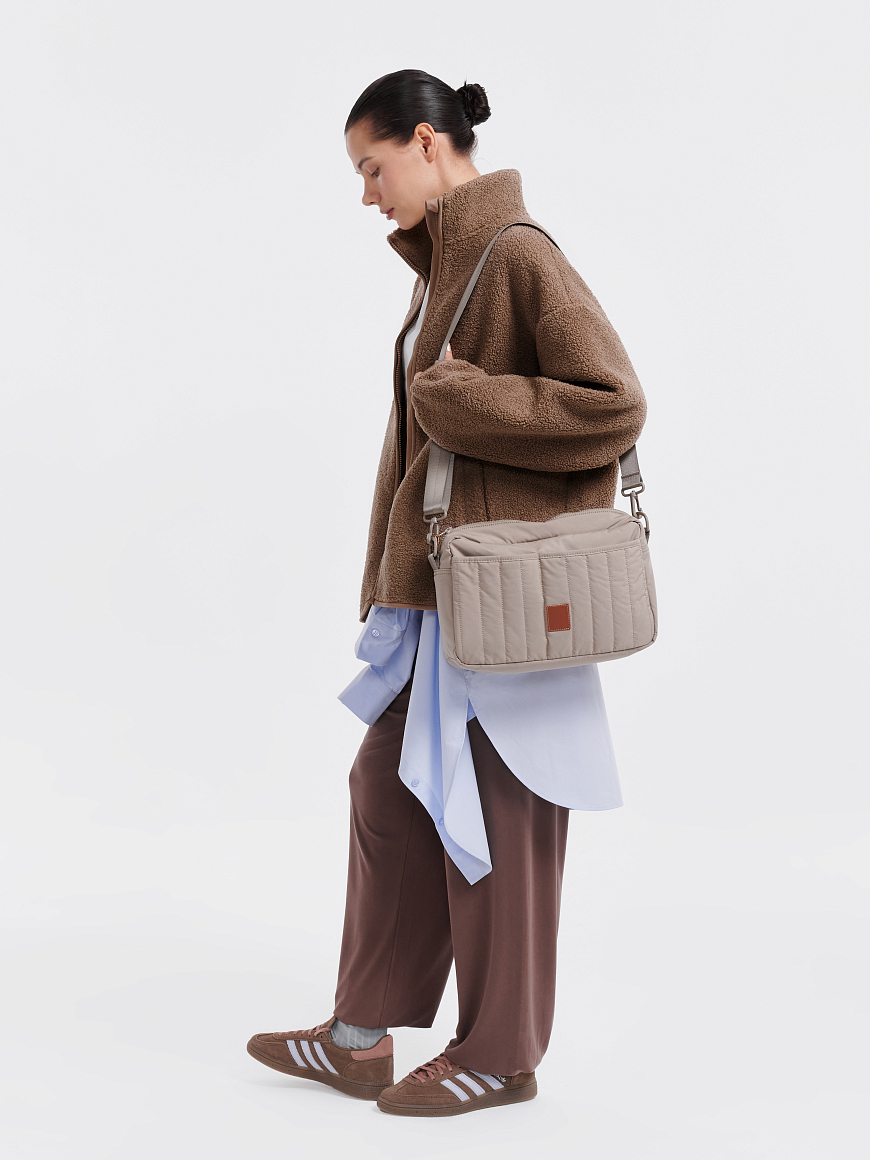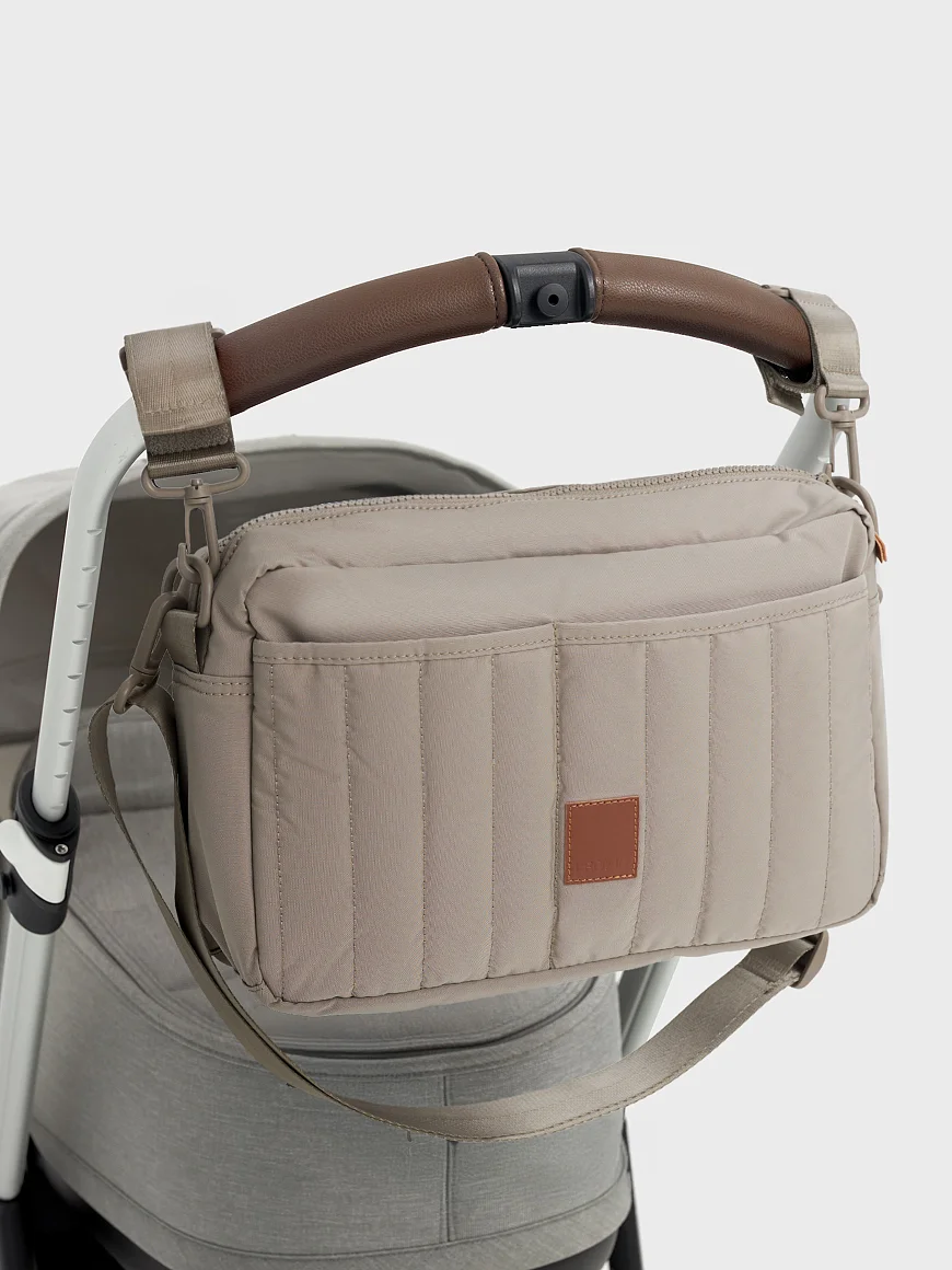 В сумке-органайзере имеется вместительное основное отделение и большое количество функциональных карманов: два внутренних кармана; два кармана на передней стороне аксессуара; карман на молнии на обратной стороне и термокарман для бутылочки. Термокарман, расположенный в основном отделении сумки-органайзера, позволяет поддерживать комфортную температуру содержимого бутылочки и удерживать её в устойчивом положении, чтобы избежать протекания.