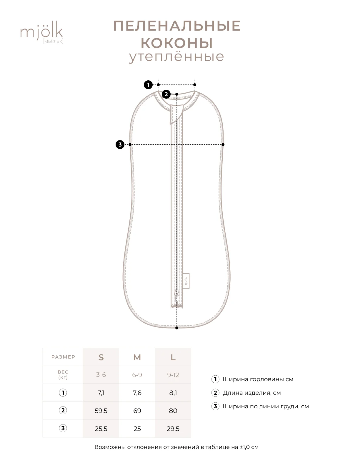Пеленальный кокон выполнен из футера – 100% хлопкового трикотажа с начесом, который подходит нежной коже новорожденного, не вызывает аллергии и дарит малышу комфорт и спокойствие. В коконе Ваш ребенок будет спокойно спать без возможности распеленаться и разбудить себя.