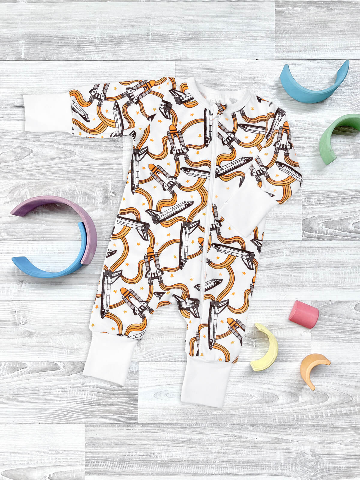 Утеплённый комбинезон с открытой ножкой Mjölk Sleep and Play Ракеты