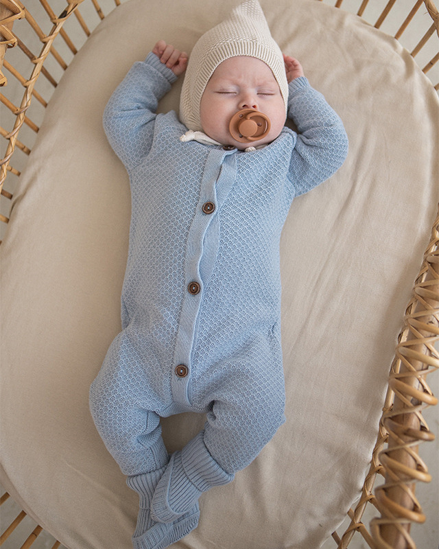 Вязаный текстурный комбинезон из хлопка, Небесный