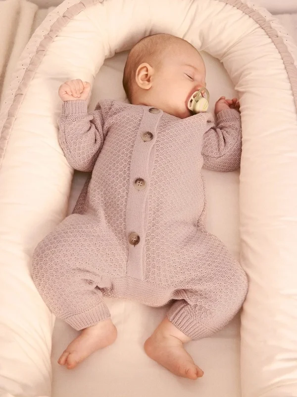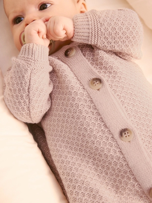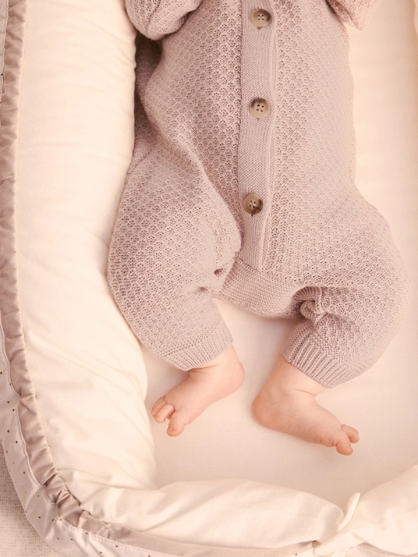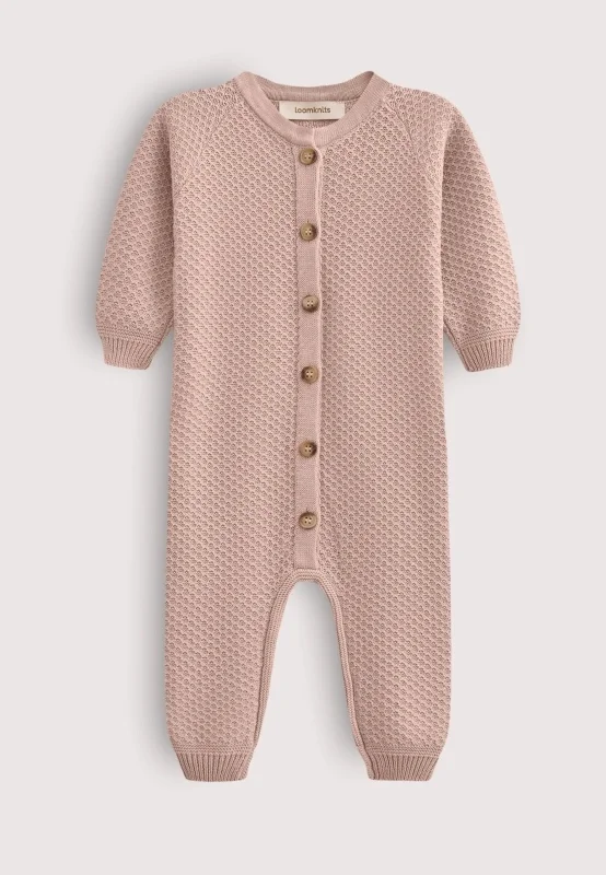 Вязаный текстурный комбинезон из хлопка, Пудровый