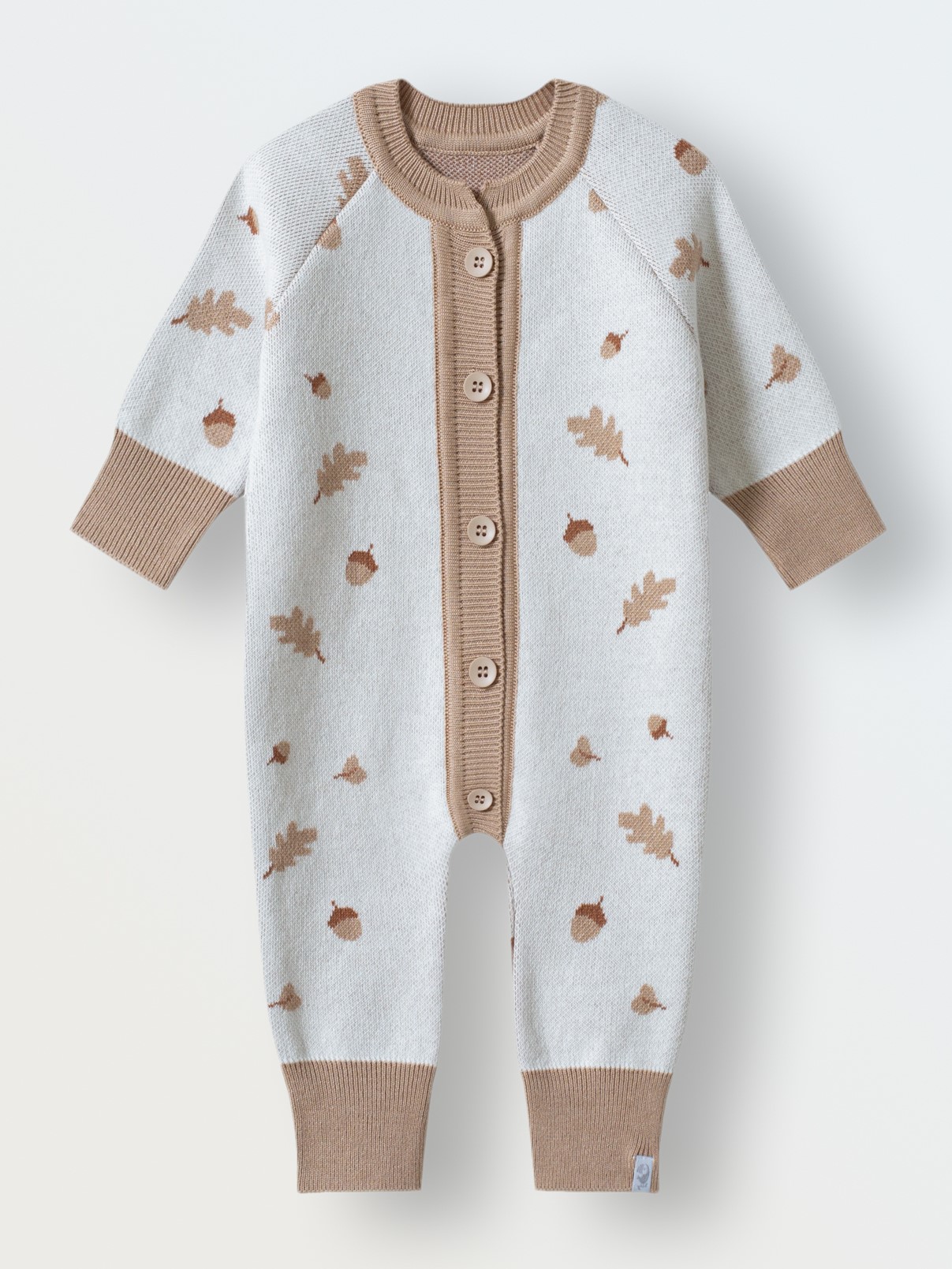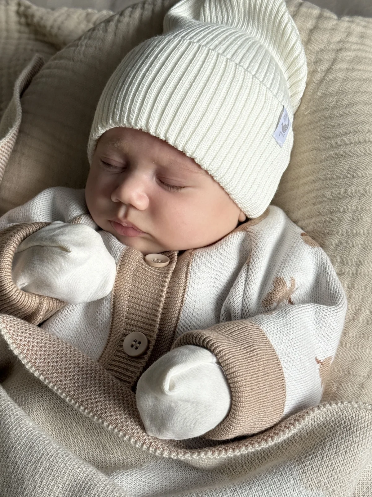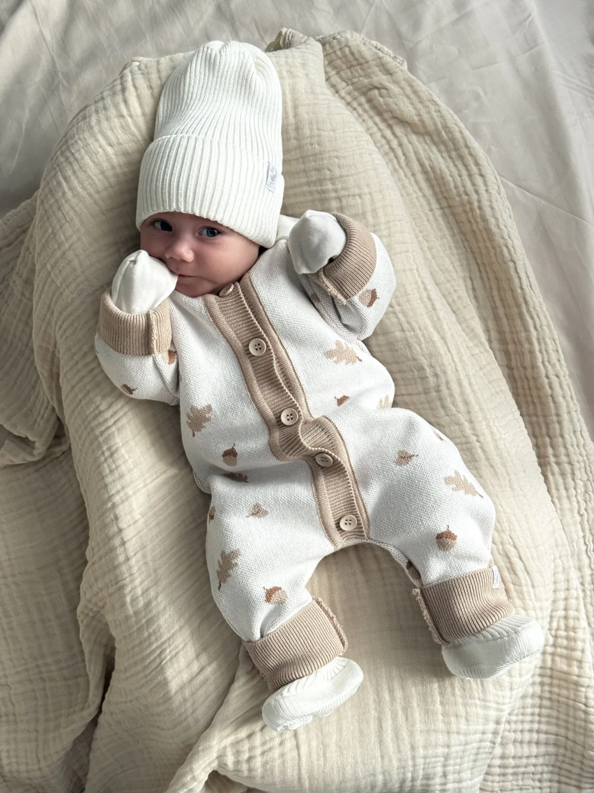 Стильный вязаный комбинезон для малышей. Мягкий , приятный и нежный на ощупь комбинезончик. На ножках и ручках открытые манжеты, которые можно подвернуть по мере роста малыша , его хватит надолго.