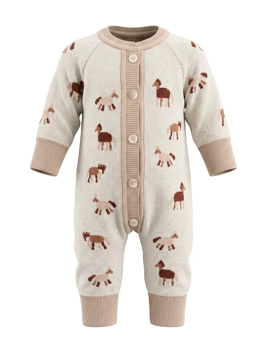 Стильный вязаный комбинезон для малышей. Мягкий , приятный и нежный на ощупь комбинезончик. На ножках и ручках открытые манжеты, которые можно подвернуть по мере роста малыша , его хватит надолго.