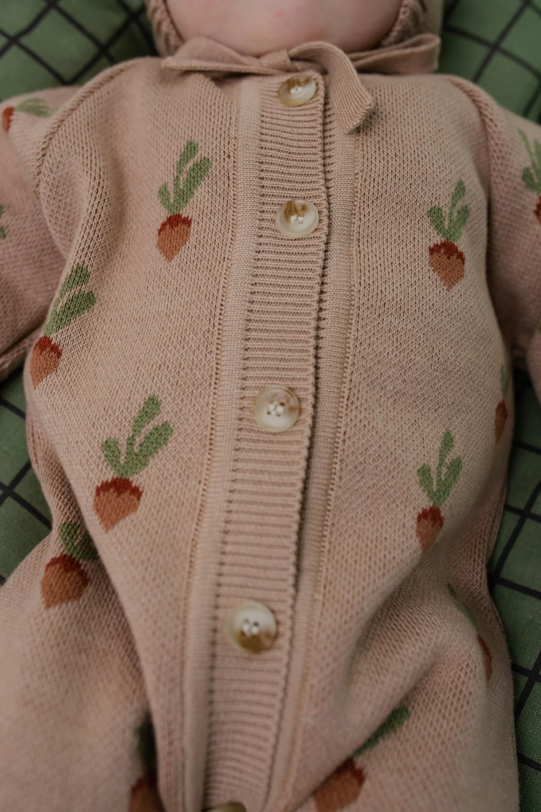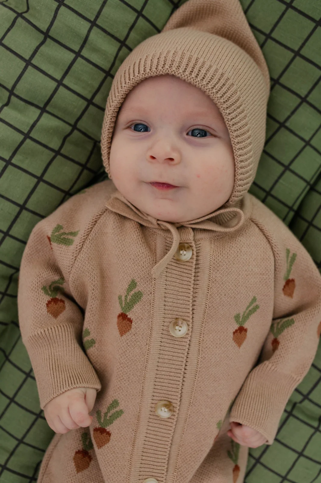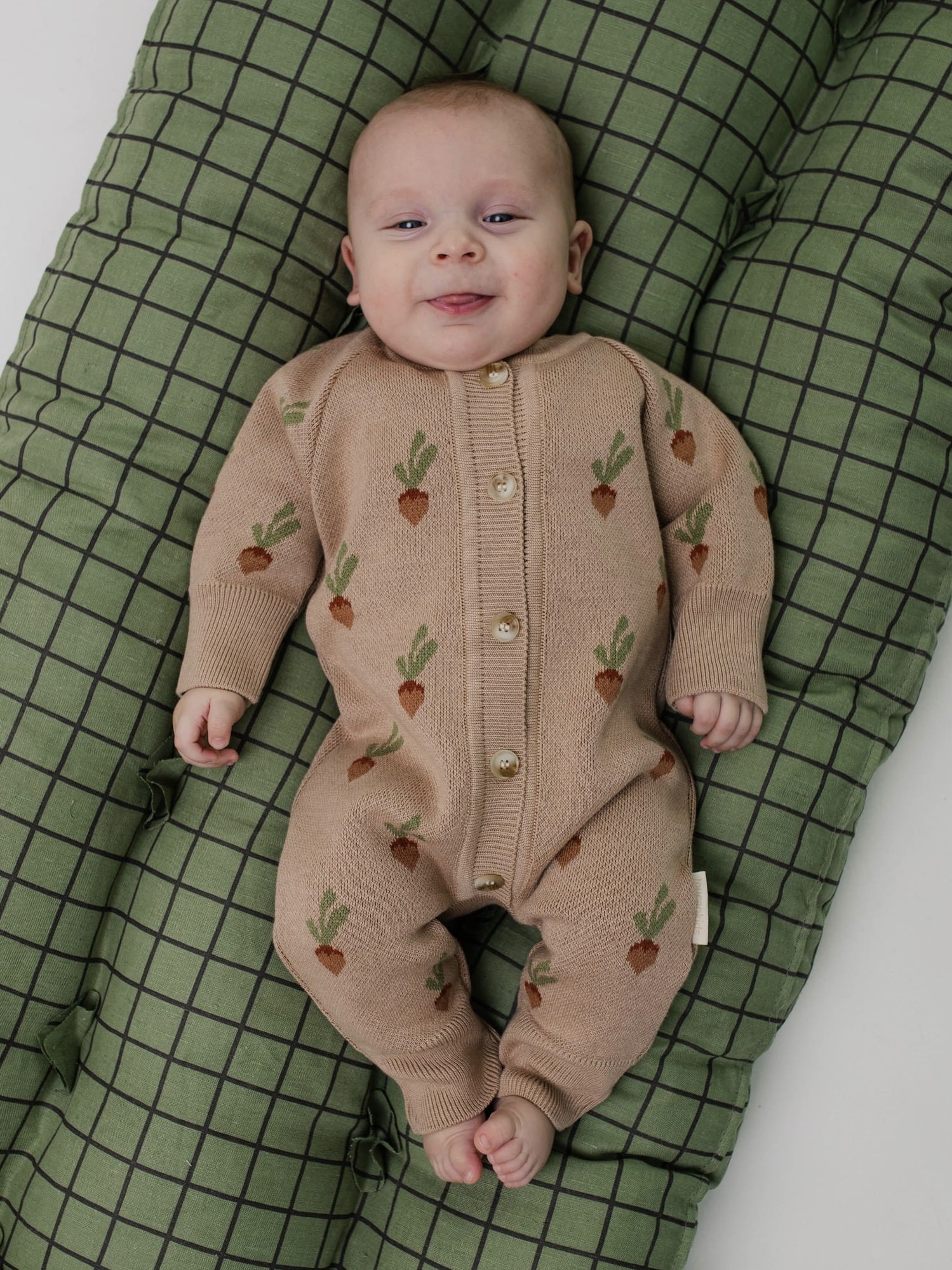 Стильный вязаный комбинезон для малышей. Мягкий , приятный и нежный на ощупь комбинезончик. На ножках и ручках открытые манжеты, которые можно подвернуть по мере роста малыша , его хватит надолго.