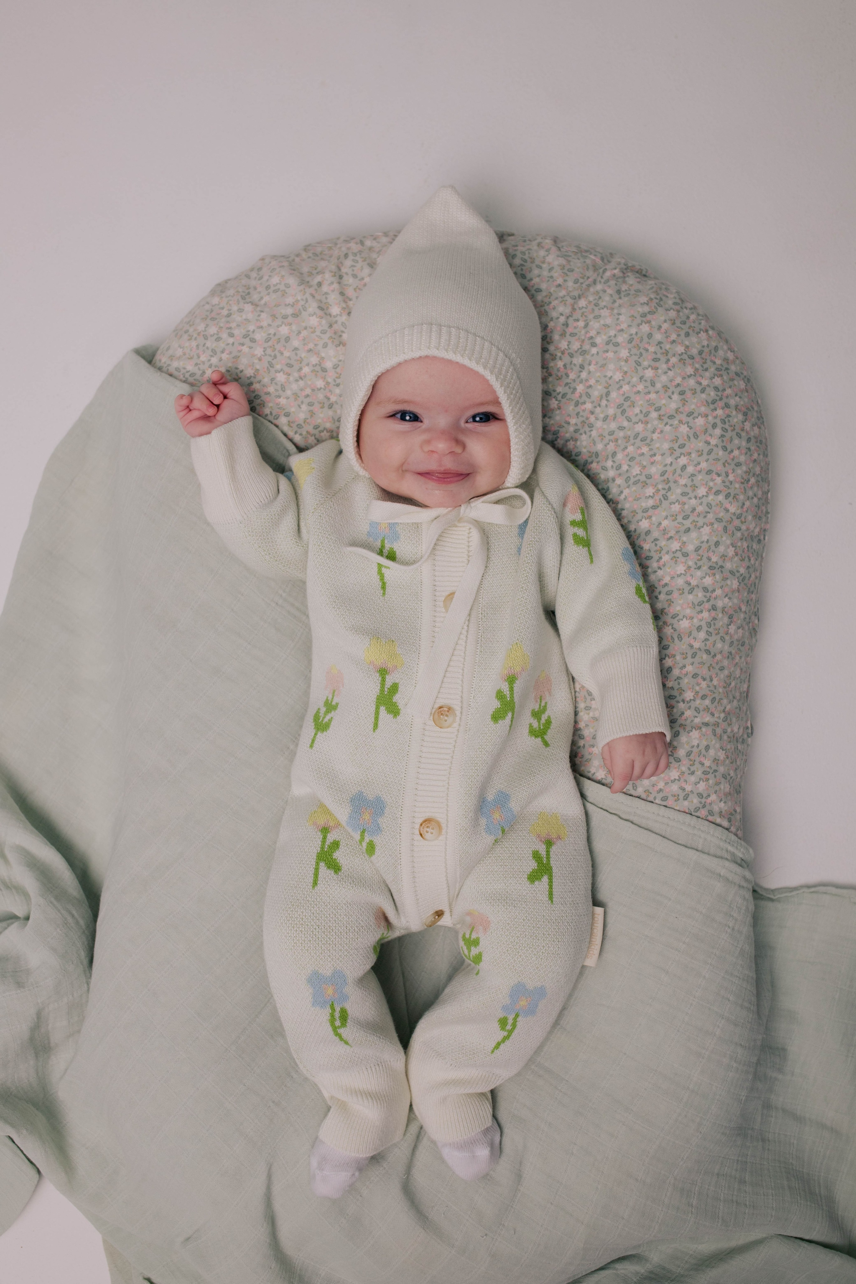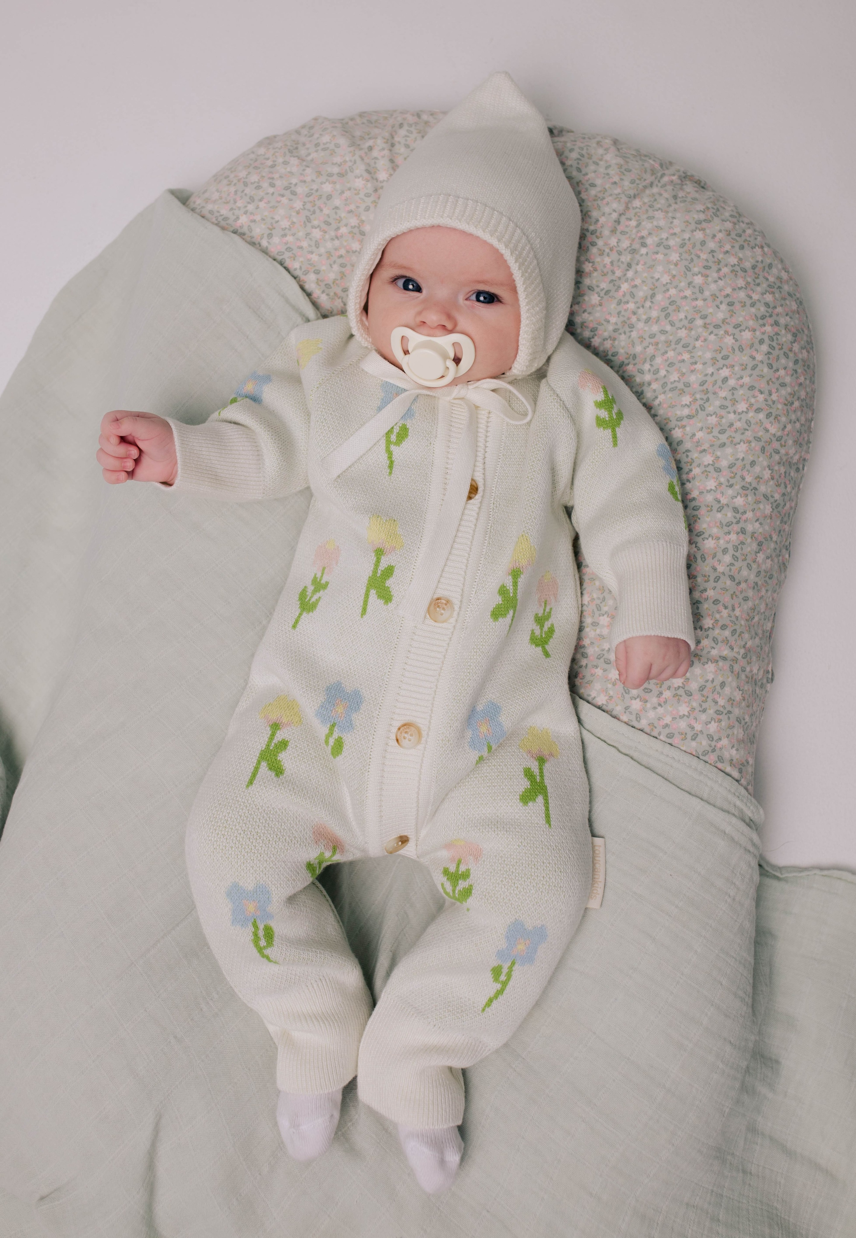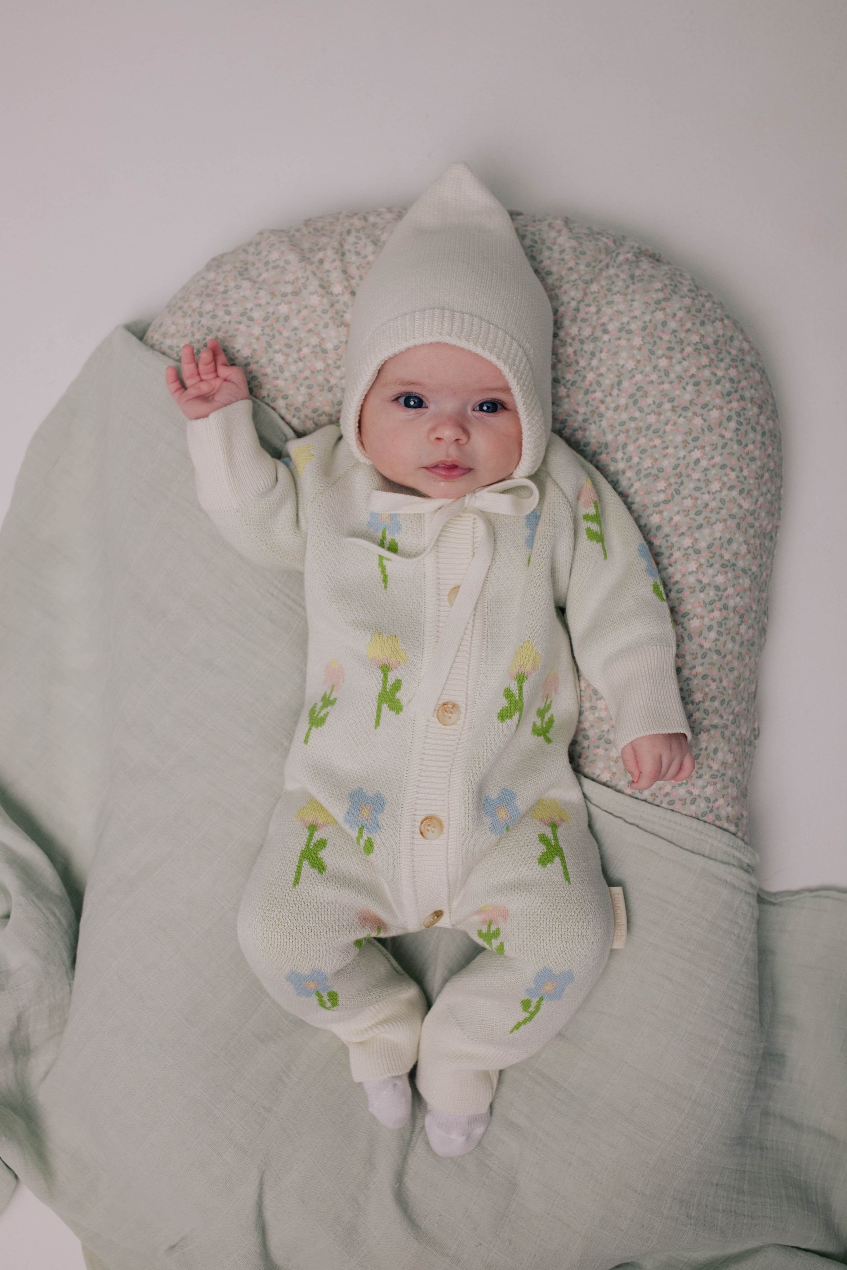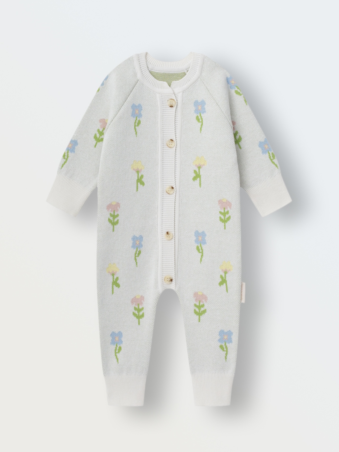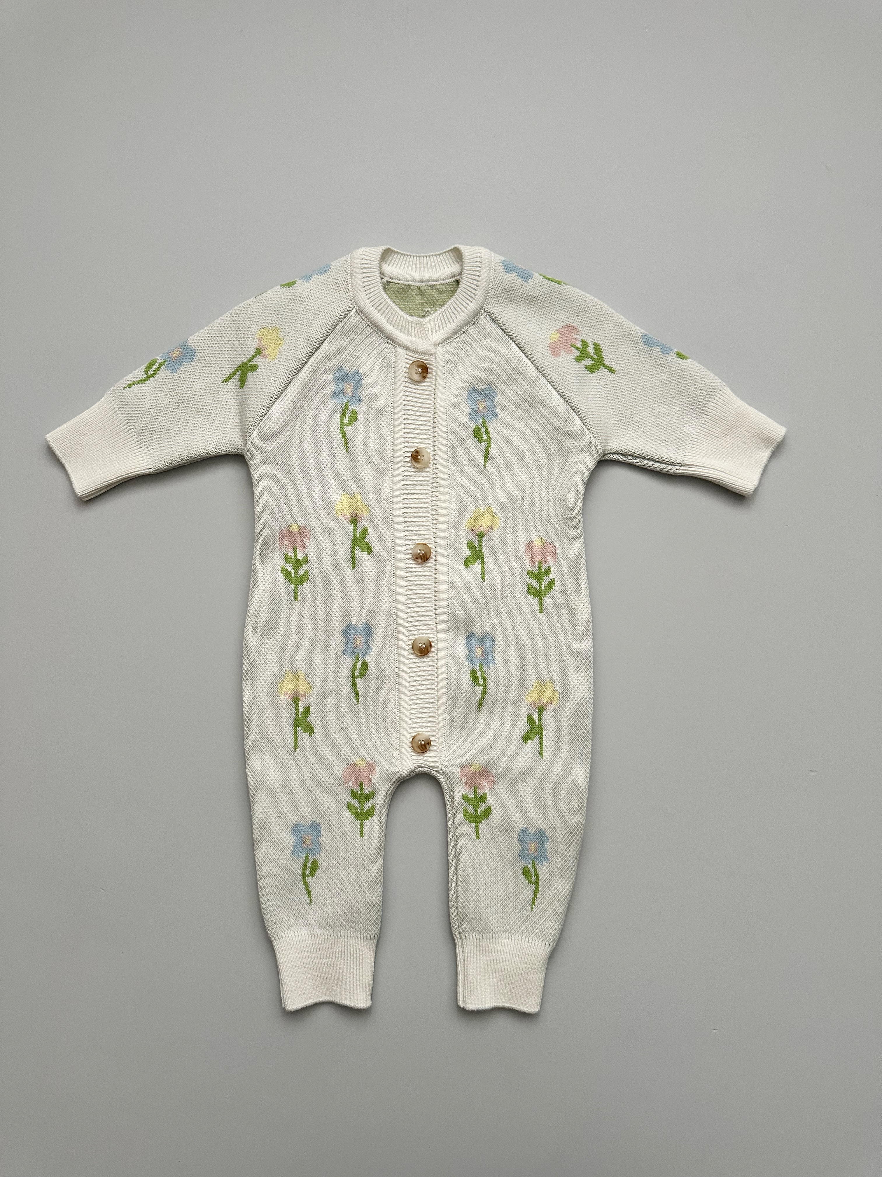 Стильный вязаный комбинезон для малышей. Мягкий , приятный и нежный на ощупь комбинезончик. На ножках и ручках открытые манжеты, которые можно подвернуть по мере роста малыша , его хватит надолго.