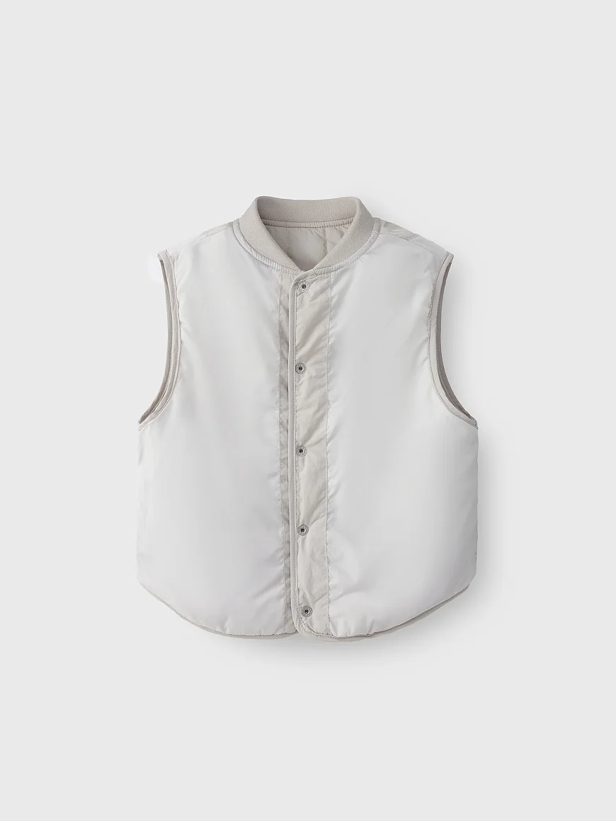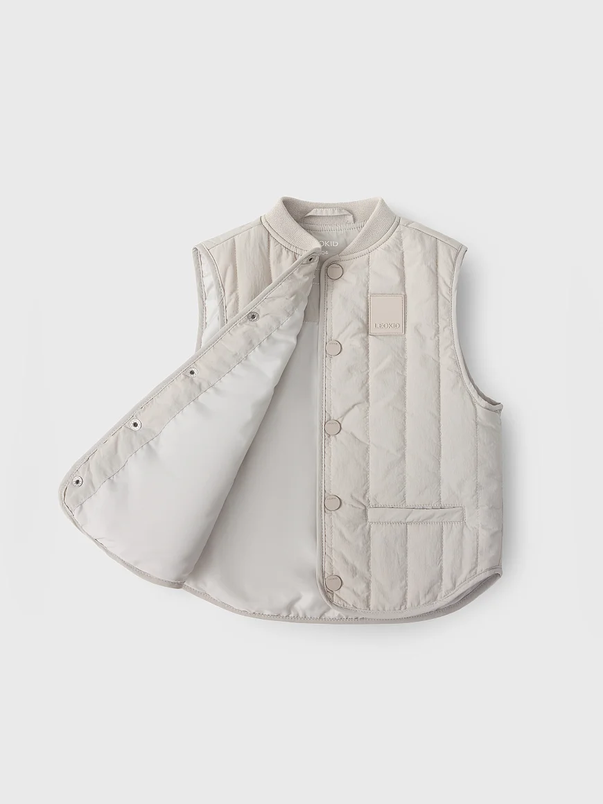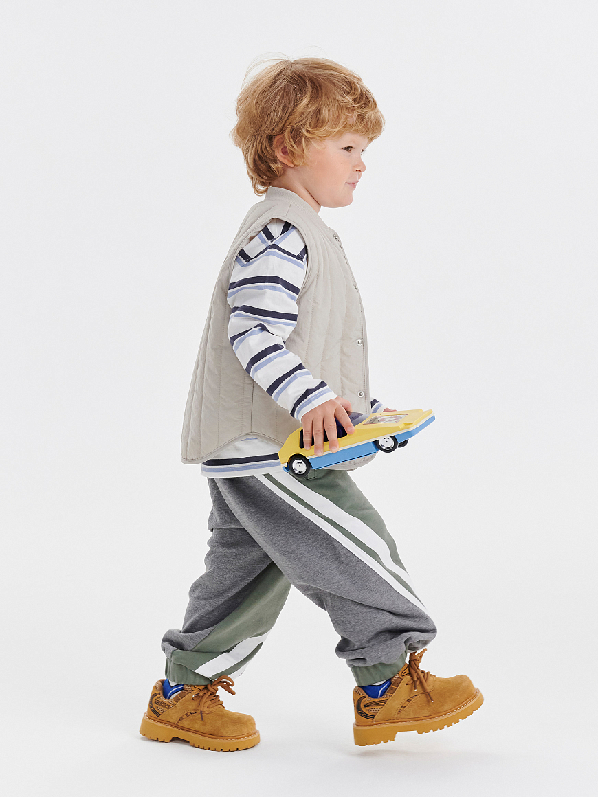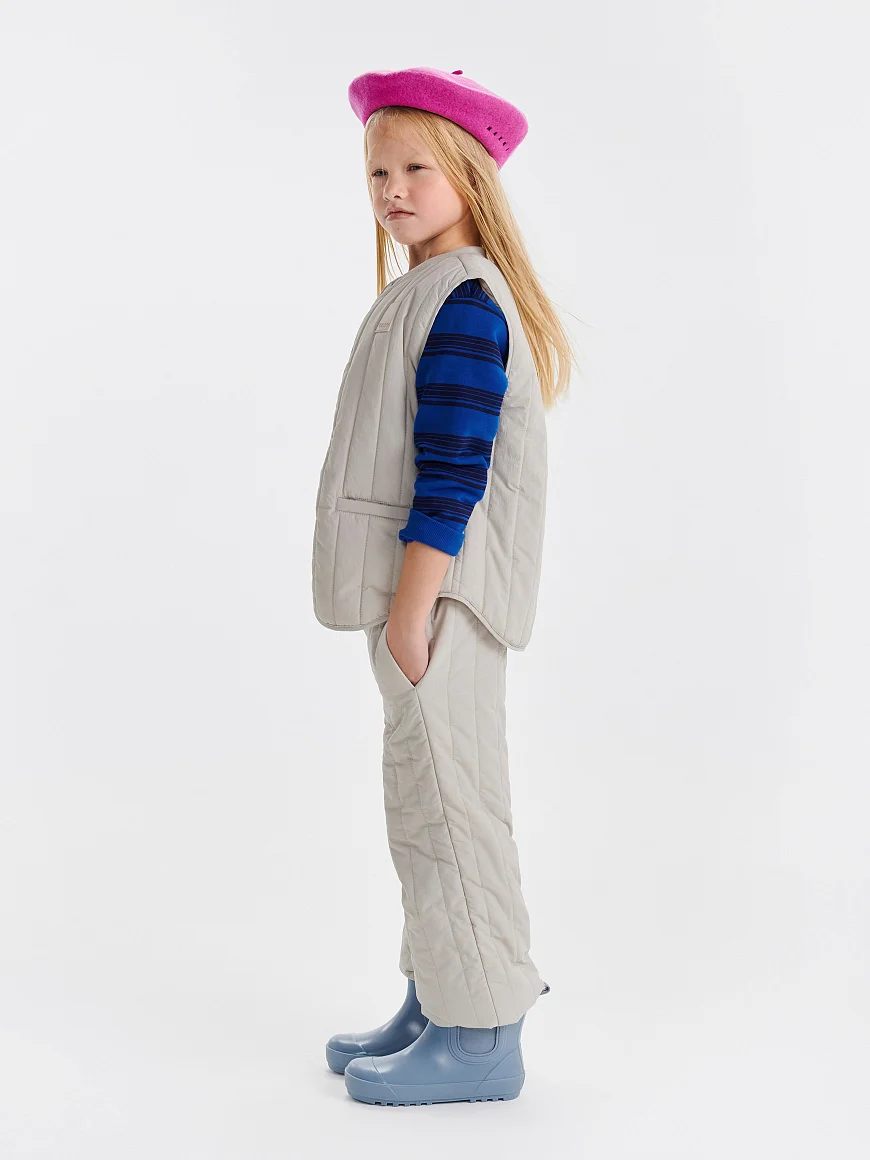 Жилет-ватник, как у самых модных взрослых. Можно носить самостоятельно или в качестве утепления, создавая уютные многослойные образы. Из него не захочется вырастать, поэтому мы выпустили его в широком размерном ряду — от 12 месяцев до 11 лет. Может похвастаться вертикальной стежкой, трендовым жатым эффектом, легким утеплителем 100 г, водоотталкивающей пропиткой, удлиненной спинкой, кармашками по бокам, мягким воротником бомберного типа и гладкой подкладкой, чтобы удобно было надевать. Создан для теплого межсезонья и прохладного лета, когда куртка уже не нужна, а уюта все-таки хочется.