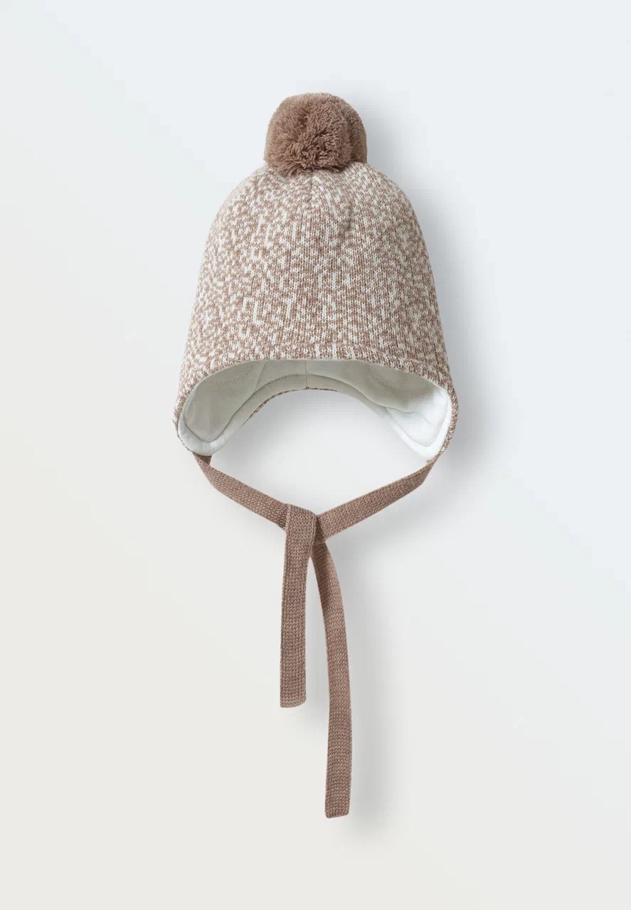 В шапочке предусмотрена мембранная ветрозащита ушей, она выполнена в анатомичной форме, плотно прилегающей к голове и надёжно закрывающей ушки от ветра. Завязки фиксируют её под подбородком, а мягкий помпон добавляет акцент.