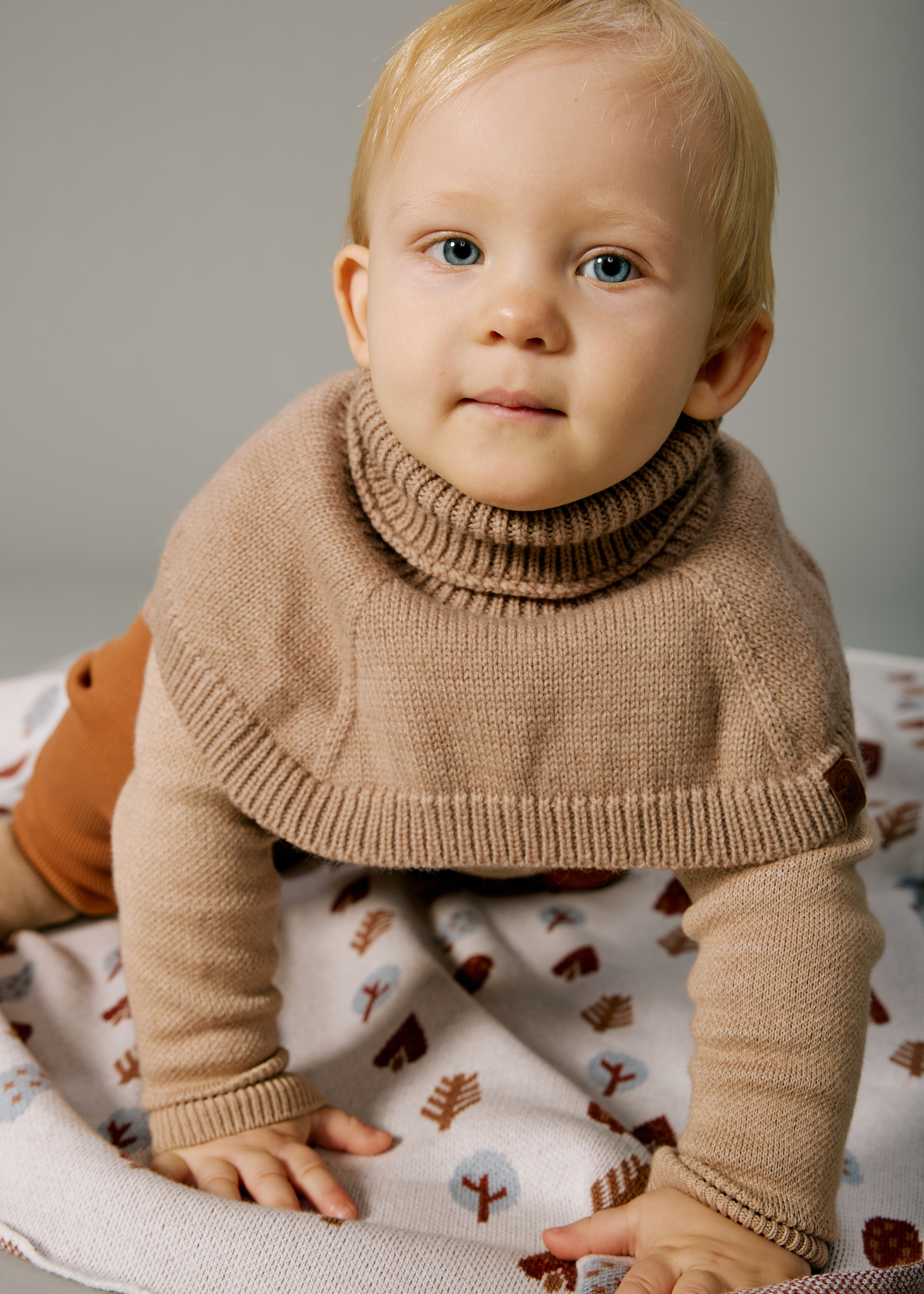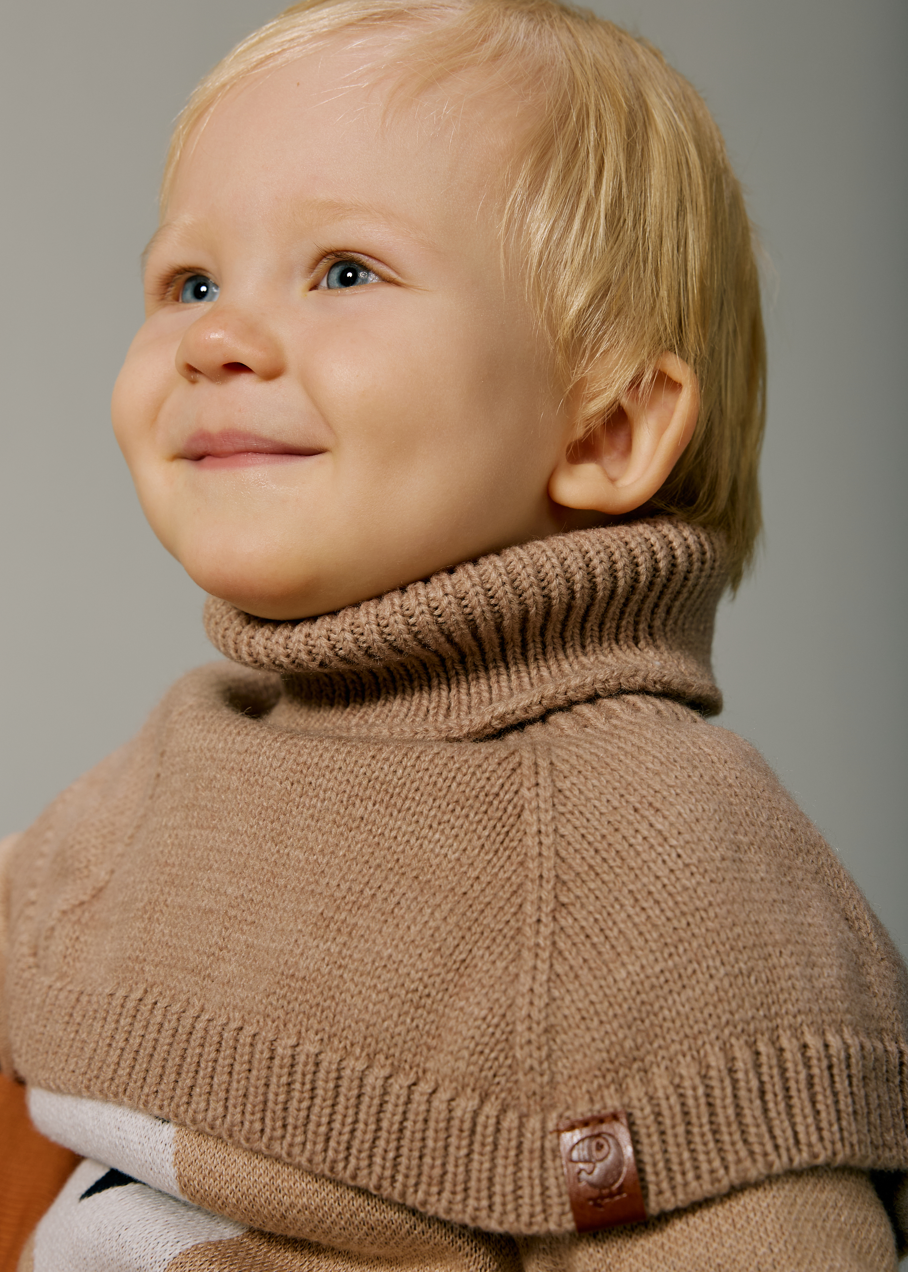 Комплект из шапки и манишки из пряжи с шерстью мериноса — тёплый, уютный и продуманный до мелочей.
