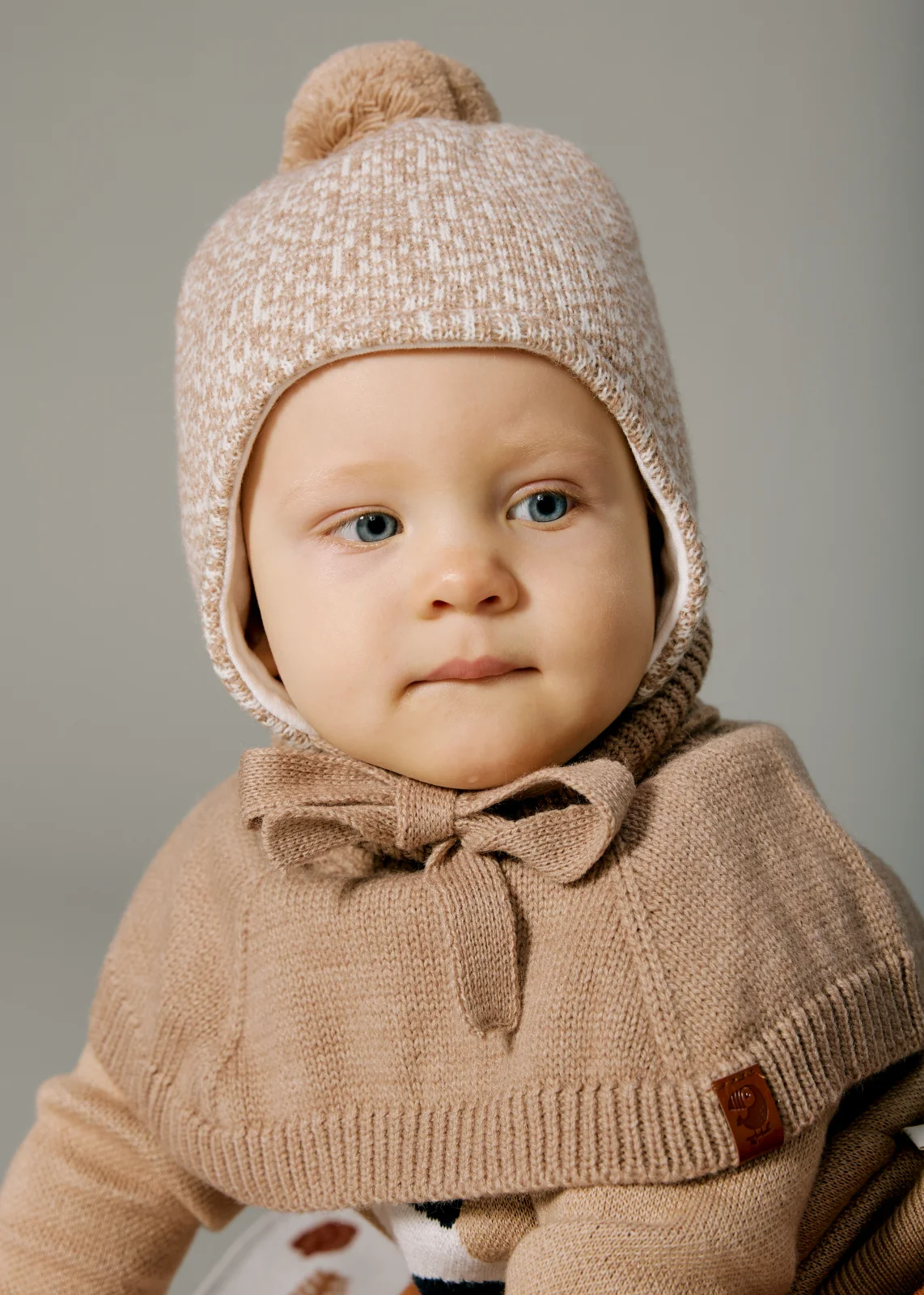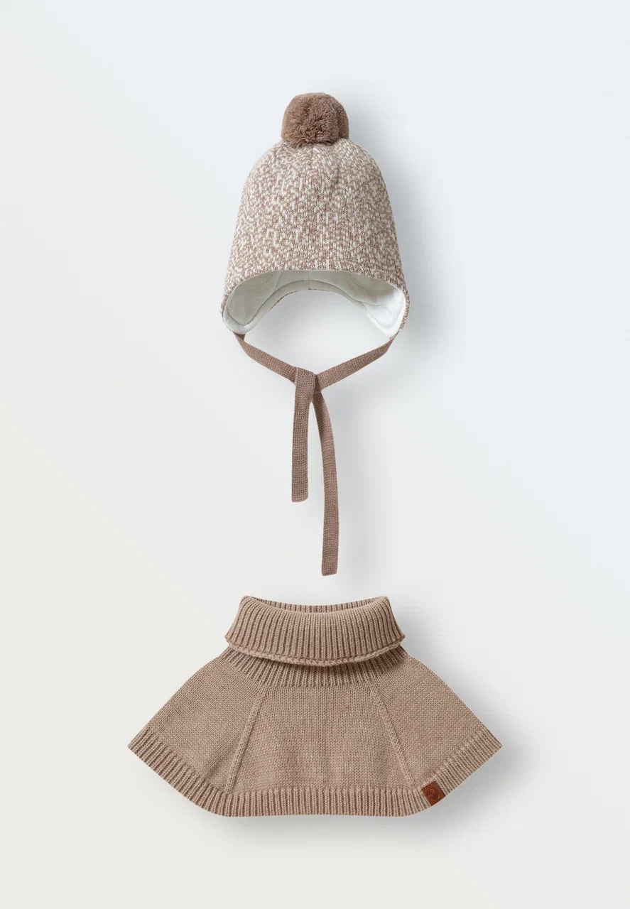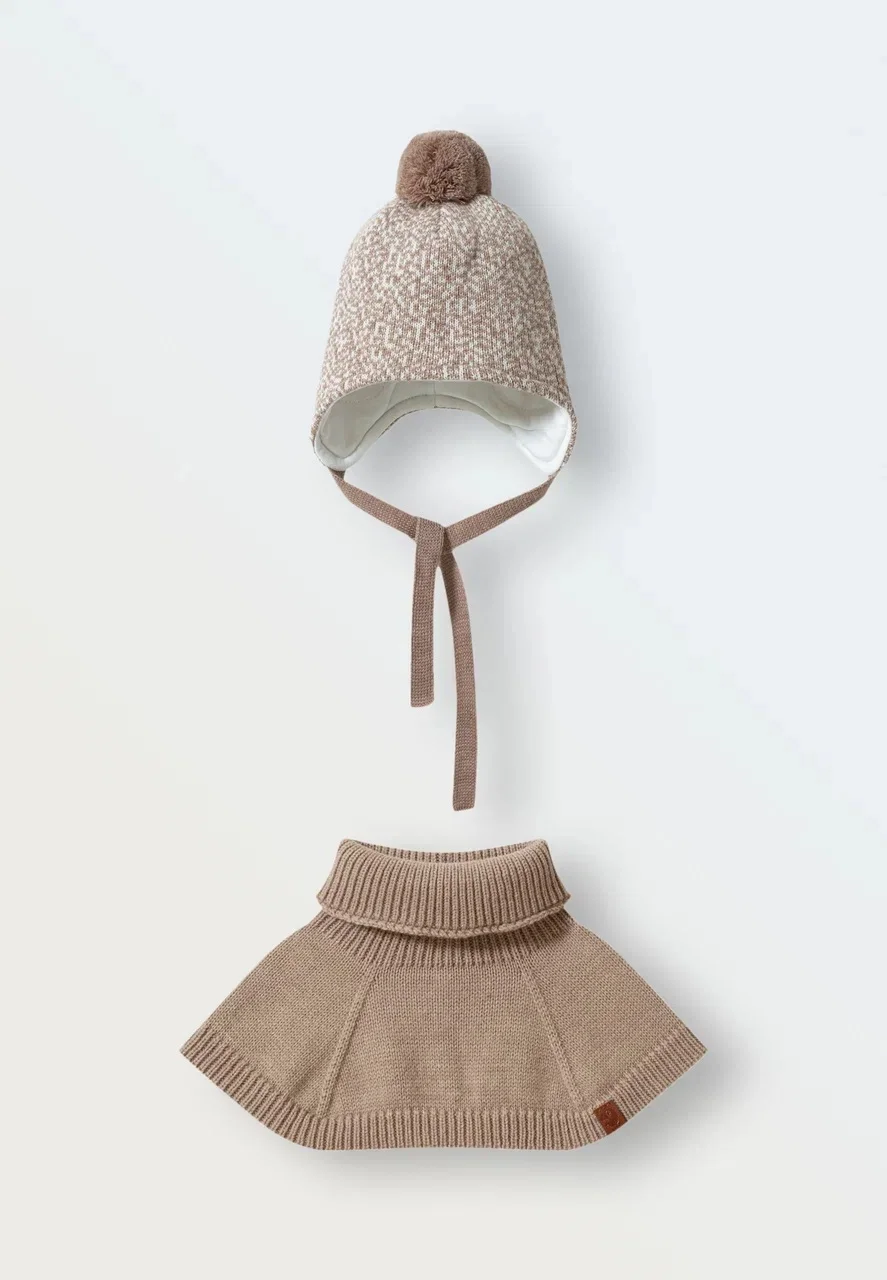 Зимний комплект шапка с манишкой, Тёплый беж+Экрю
